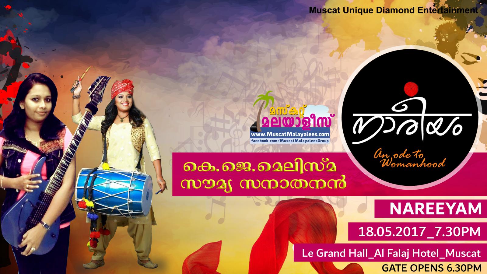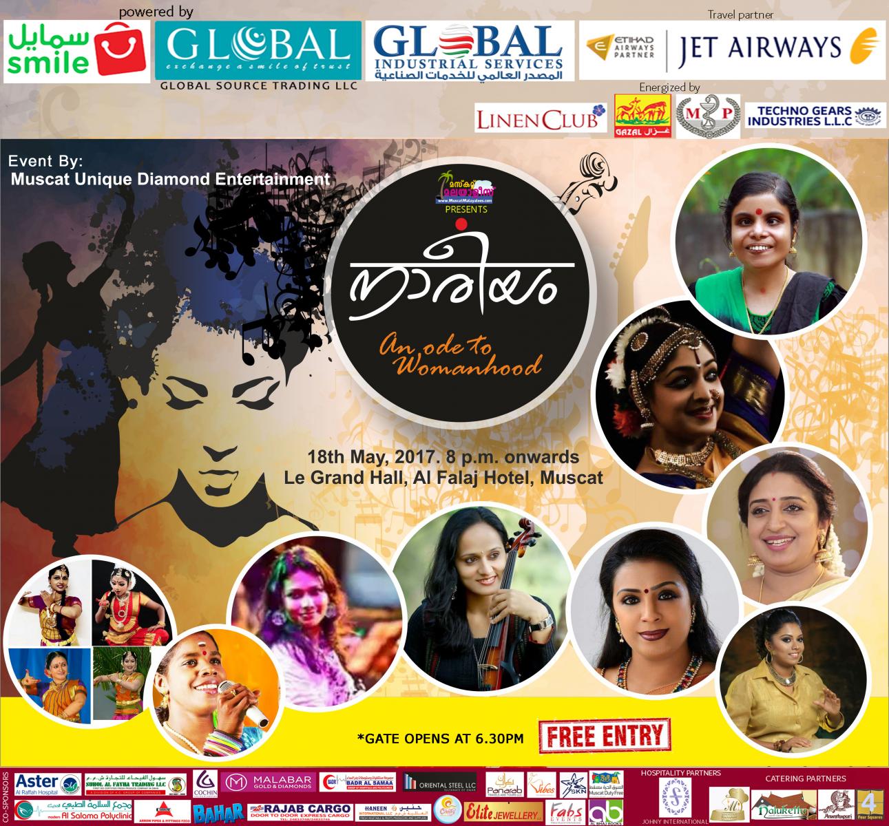 മലയാള സിനിമാ സീരിയല് സംഗീത മേഖലയില് പ്രഗല്ഭരായ ഒരു പറ്റം നാരികള് അവതരിപ്പിക്കുന്ന സംഗീത നൃത്തവാദ്യോഘോഷത്തില് എത്തിയിരിക്കുന്നത് സുപ്രസിദ്ധ ഗായികയും ഗായത്രീ വീണ വായനയില് ഡോക്ടറെറ്റ് ലഭിച്ച വൈക്കം വിജയലക്ഷ്മി, ചലച്ചിത്രതാരങ്ങളായ സോനാ നായര്, ശ്രീലക്ഷ്മി, സുപ്രസിദ്ധ പിന്നണി ഗായിക പ്രീത കണ്ണന്, വിവിധയിനം വാദ്യോപകരണങ്ങളില് പ്രാഗത്ഭ്യം തെളിയിച്ച സൌമ്യ സനാതനും മെലിസ്മയും, വയലിനില് മാസ്മരിക പ്രകടനം കാഴ്ച വെയ്ക്കുന്ന രൂപാ രേവതി, നാടന് പാട്ടിന്റെ വേറിട്ട ഭാവവുമായി പ്രസീദ ചാലക്കുടി, നൃത്തത്തില് ബിന്ദു പദീപും ടീമിനോടൊപ്പം നമ്മുടെ മസ്കറ്റിലെ പ്രവാസ ലോകത്ത് നിന്നും തിരഞ്ഞെടുക്കപെട്ട കലാകാരികളും പങ്കെടുക്കുന്നു.