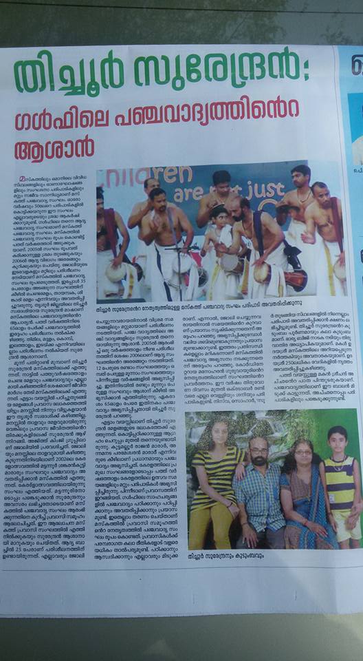 ഈ ഓണക്കാലത്ത് മസ്കറ്റില് പത്താം വാര്ഷികം ആഘോഷിക്കാന് തയ്യറെടുക്കുകയാണ് ആശാന്റെ നേതൃത്വത്തില് ഉള്ള മസ്കറ്റ് പഞ്ചവാദ്യ സംഘം. താളങ്ങളുടെ ലോകത്ത് ഒരുപാട് ദൂരം കൊട്ടിക്കയറാന് സുരേന്ദ്രന് ആശാനും സംഘത്തിനും സാധ്യക്കട്ടെയെന്ന് നമുക്ക് ആശംസിക്കാം, ഒപ്പം ഒന്നായി നേരാം എല്ലാവിധ പ്രാര്ഥനകളും.............