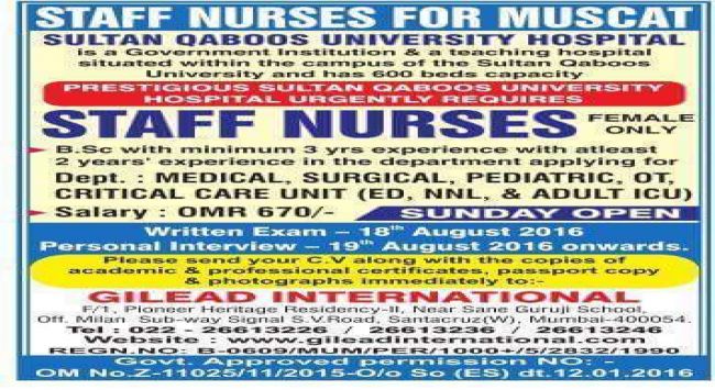 Opening for Nurses SQUH Muscat