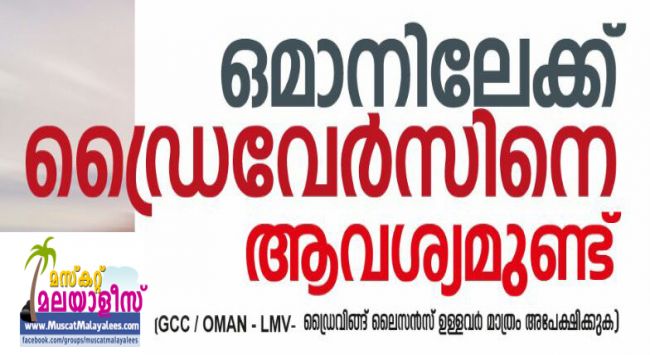ഗള്‍ഫിലെ ഡ്രൈവിംഗ് ലൈസന്‍സും പ്രവര്‍ത്തിപരിചയവും ഉള്ള ഡ്രൈവര്‍മാര്‍ക്ക് ഒമാനില്‍ ഒഴിവുകള്‍.